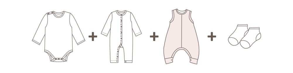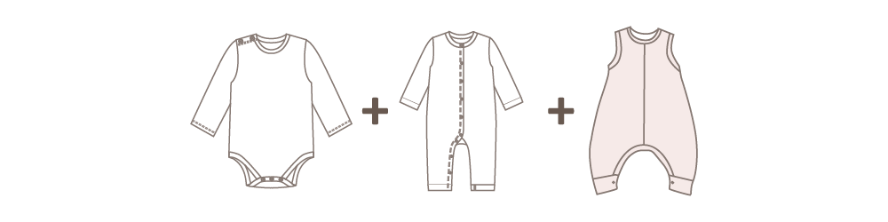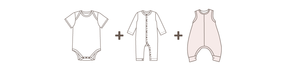 新生兒體溫調節中樞發育尚未完全, 無論季節,月子內寶寶建議長袖,尤其夏天冷氣普及,連身包屁衣保護寶寶肚子不外露