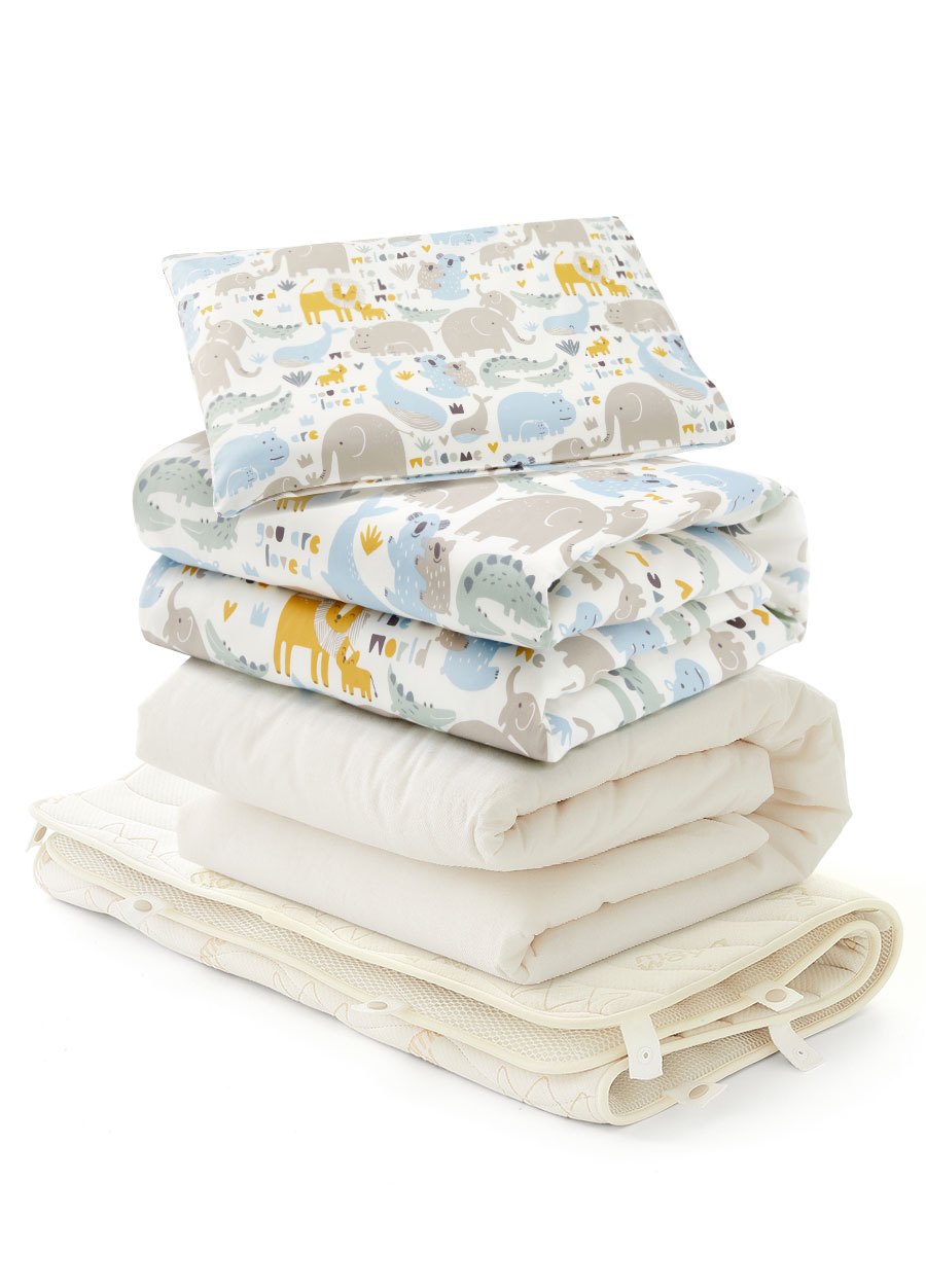 調溫抗菌透氣睡袋全組-親子動物園(涼被+厚被+床墊3件組)