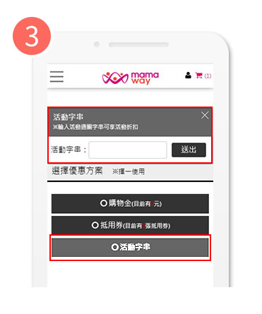 客服審核確認資料無誤後,會提供專屬折扣碼,請進入mamaway官網選購商品,結帳時輸入折扣碼並完成結帳,芬蘭嬰兒床將會安排寄出。