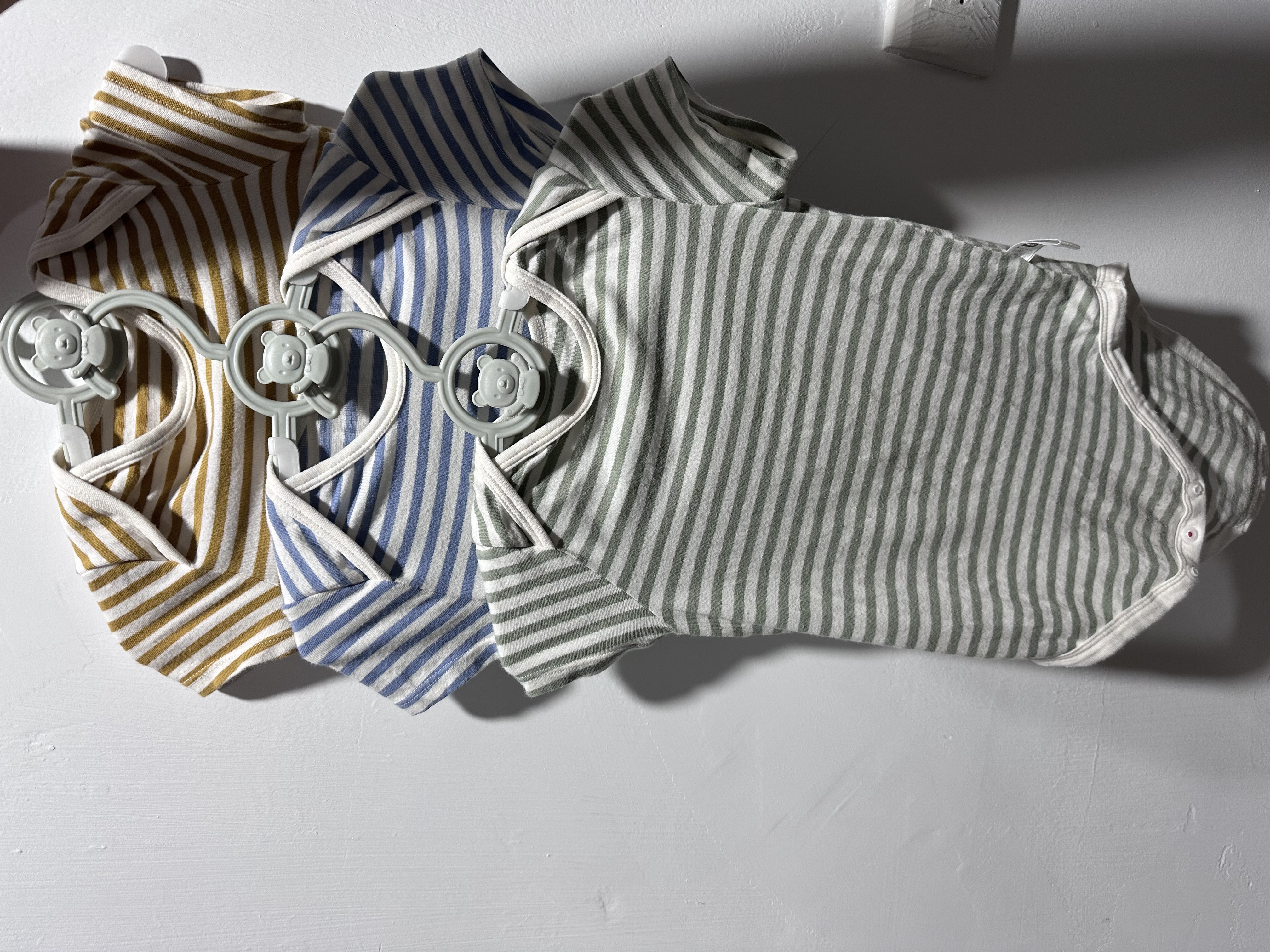 再來就是媽媽餵的包屁衣,買來買去還是最喜歡媽媽餵的,彈性非常好,材質摸起來也很親膚,穿久也不會變形或鬆掉,最重要的是扣子非常好用,有些牌子的扣子非常難開,寶寶小的時候常常一隻手抱baby 一隻手解扣,遇到難開的扣子真的會很崩潰,媽媽餵的完全沒有這個問題!
