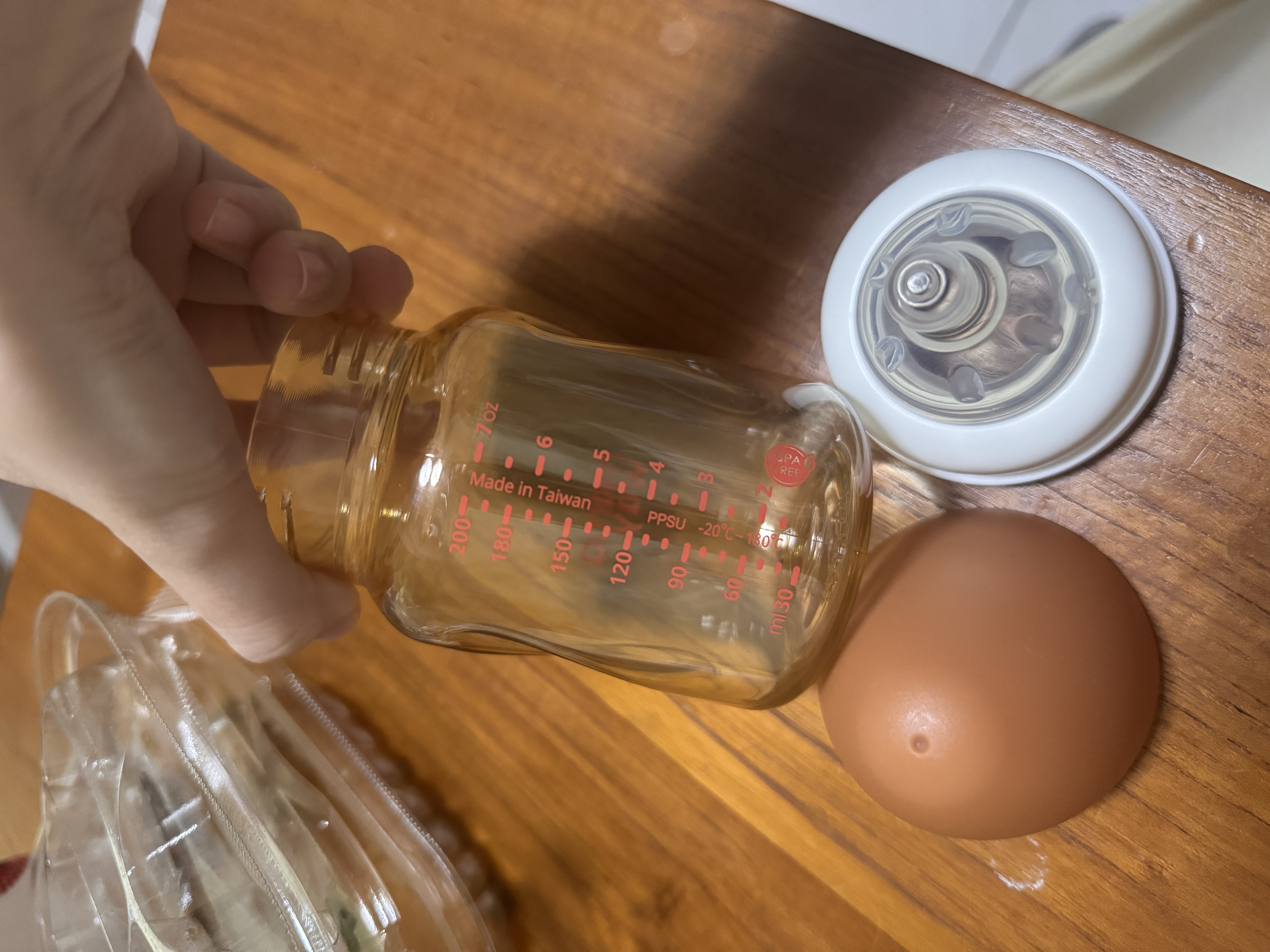 防脹氣奶瓶從月中用到大,出月中後用的奶瓶是其他牌,一直會覺得小孩吸到空氣,換了媽媽餵的奶瓶後,發現吸到空氣的比例變少了,而且奶嘴頭也有弧度,感覺寶寶含著的時候是很有安全感的,之前餵藥也有用過這隻奶嘴頭,也不太會漏,加上可愛的外表,蓋子也很好開,單手就能操作!